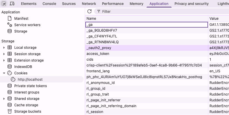 Once authenticated, an _oauth2_proxy cookie is created and used for subsequent requests.